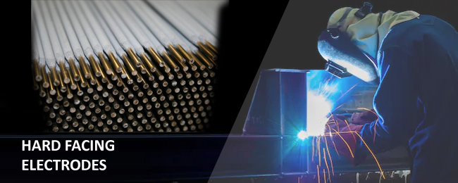 A medium rutile type hard facing electrode gives an air hardening weld metal on deposition, suitable for hard facing applications involving the severe abrasion and moderate impact.
